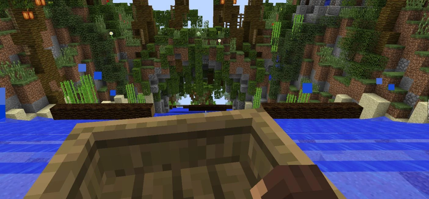 This map contains a large water slide with the players in boats. The players must reach the bottom of the water slide, avoiding moving logs and the walls. Your 'score' is indicated at the side, which is the distance you have traveled before reaching the finish line. This game was removed shortly after the release of 1.9, due to version parity issues with the boats.
