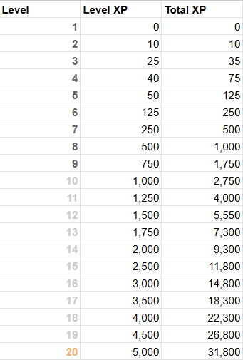 Level requirements as of April 7, 2025