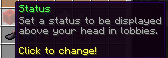The Status menu is split into 18 different categories with their own category, ranging from general statuses to individual game statues. Most statuses are unlocked and available for use with the MVP++ rank, only excluding statuses in the General Stat category.